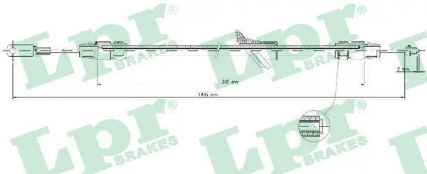 Трос стояночного гальма передн/середн (1465мм/365мм) VW CRAFTER 30-35, CRAFTER 30-50 2.5D 04.06-05.13 LPR C0140B