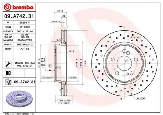 - BREMBO 09.A742.31 підходить до марок/моделей авто: