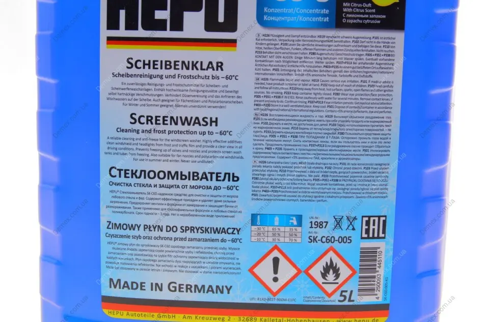 Омивач скла зима (5L) (-60°C) HEPU SK-C60-005
