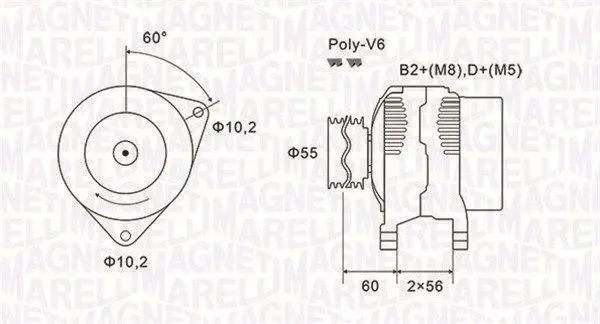 Генератор (14В, 120А, новий) OPEL ASTRA G, ASTRA G/KOMBI, OMEGA B, SIGNUM, VECTRA B, VECTRA C, VECTRA C GTS, ZAFIRA A 2.0D/2.2D 06.97-06.08 MAGNETI MARELLI 063731577010