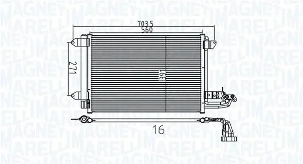 Конденсатор кондиціонера (з осушувачем) AUDI A3, TT, SEAT ALTEA, ALTEA XL, LEON, TOLEDO III, SKODA OCTAVIA I, OCTAVIA II, SUPERB II, YETI, VW CADDY ALLTRACK IV 1.0-3.6 08.00-09.20 MAGNETI MARELLI 350203737000