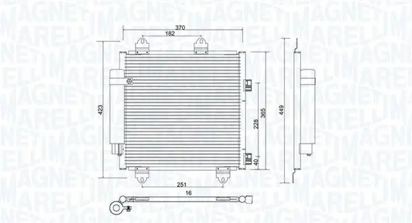 Конденсатор кондиціонера (з осушувачем) CITROEN C1, PEUGEOT 107, TOYOTA AYGO, AYGO/HATCHBACK 1.0/1.2/1.4D 06.05- MAGNETI MARELLI 350203753000